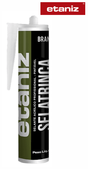 Selante acrílico, recomendado para tratamento de trincas e fissuras em alvenaria.